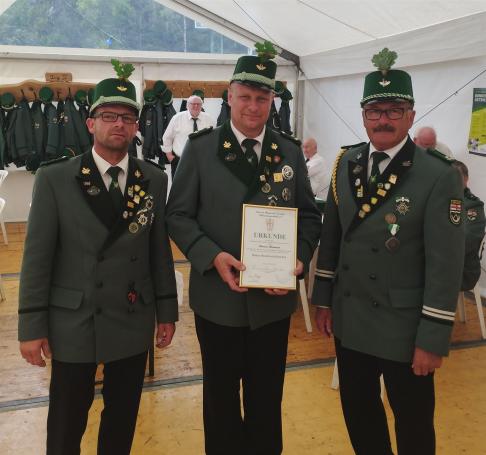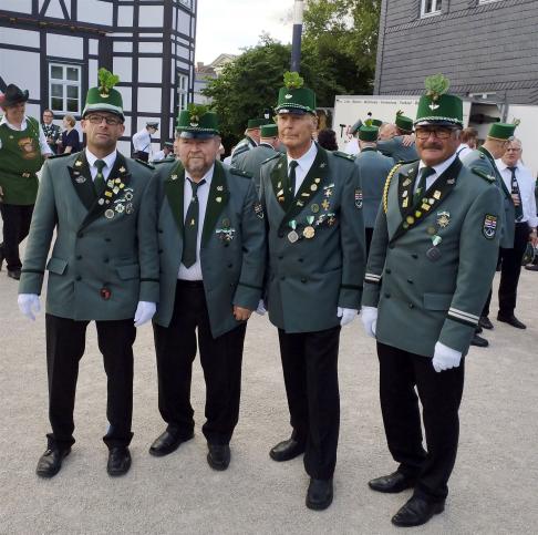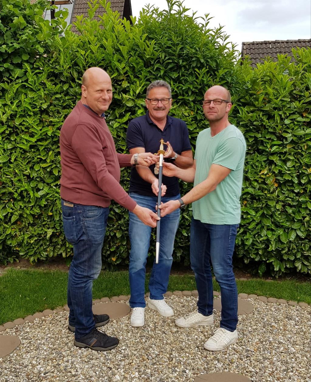 Gegen 19:00 Uhr trafen die Ehrenzugführer des Zuges ein und es erfolgte ein kleiner Imbiss. Im Anschluss wurde der Zugdegen von Thomas Wilsmann an Bernhard Weber übergeben. Dieser reichte Ihn symbolisch an Marc Wiethoff weiter, da Bernhard seinen Dienstgrad als KpSpieß behalten hat und Marc den Zug bei den Paraden repräsentieren wird. Der Abend klang bei kalten Getränken und netten Gesprächen aus. Eine weitere Gruppenführer Versammlung ist für das 2. Halbjahr geplant.